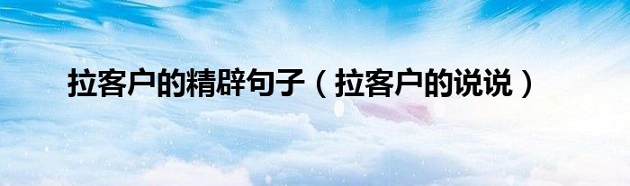 大家好,拉客户的精辟句子,拉客户的说说很多人还不知道,现在让我们一起来看看吧!
