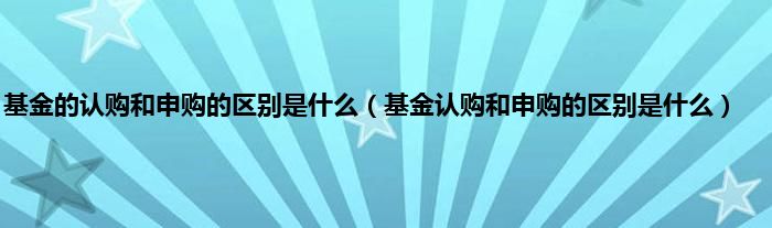 基金的认购和申购的区别是什么(基金认购和申购的区别是什么)