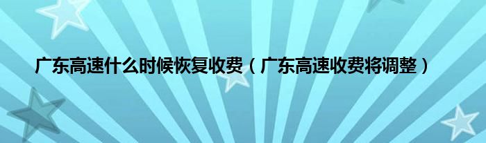 本文,广东高速什么时候恢复收费,广东高速收费将调整到此就分享完毕,希望对大家有所帮助。