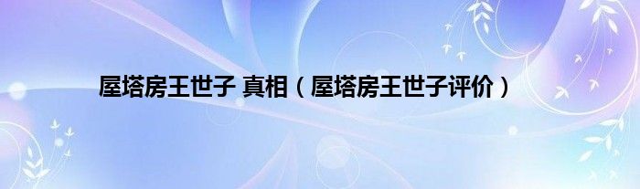 大家好,屋塔房王世子 真相,屋塔房王世子评价很多人还不知道,现在让我们一起来看看吧!