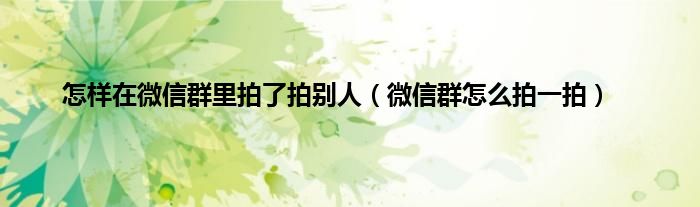 本文,怎样在微信群里拍了拍别人,微信群怎么拍一拍到此就分享完毕,希望对大家有所帮助。