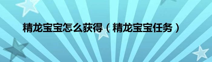 大家好,小问来为大家解答以上问题。精龙宝宝怎么获得,精龙宝宝任务这个很多人还不知道,现在让我们一起来看看吧!
