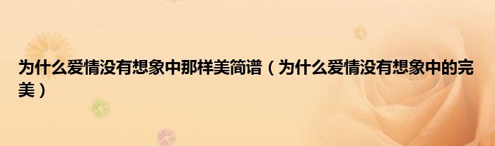 大家好,小问来为大家解答以上问题。为什么爱情没有想象中那样美简谱,为什么爱情没有想象中的完美这个很多人还不知道,现在让我们一起来看看吧!