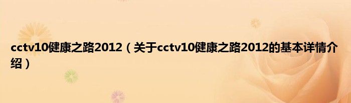 本文关于cctv10健康之路2012的基本详情介绍就讲解完毕,希望对大家有所帮助。