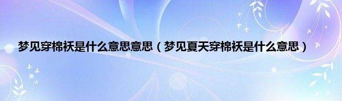 大家好,综合小编来为大家讲解下。梦见穿棉袄是什么意思意思,梦见夏天穿棉袄是什么意思这个很多人还不知道,现在让我们一起来看看吧!