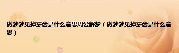 本文做梦梦见掉牙齿是什么意思周公解梦,做梦梦见掉牙齿是什么意思到此分享完毕,希望对大家有所帮助。