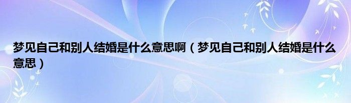 大家好,综合小编来为大家讲解下。梦见自己和别人结婚是什么意思啊,梦见自己和别人结婚是什么意思这个很多人还不知道,现在让我们一起来看看吧!