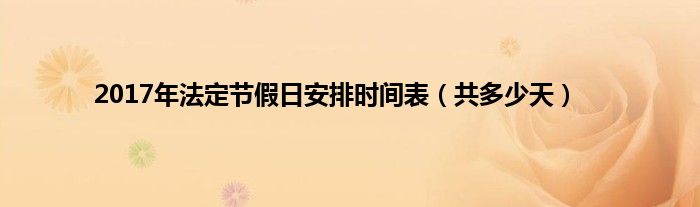 大家好,综合小编来为大家讲解下。2017年法定节假日安排时间表,共多少天这个很多人还不知道,现在让我们一起来看看吧!
