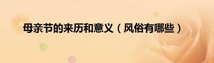 大家好,综合小编来为大家讲解下。母亲节的来历和意义,风俗有哪些这个很多人还不知道,现在让我们一起来看看吧!