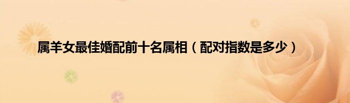 大家好,综合小编来为大家讲解下。属羊女最佳婚配前十名属相,配对指数是多少这个很多人还不知道,现在让我们一起来看看吧!