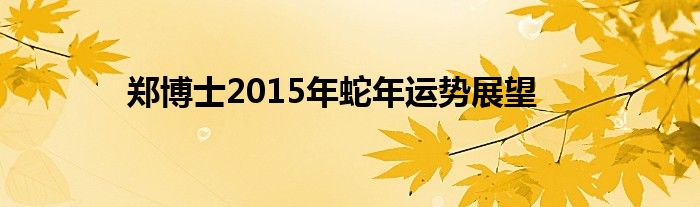 大家好,综合小编来为大家讲解下。郑博士2015年蛇年运势展望这个很多人还不知道,现在让我们一起来看看吧!