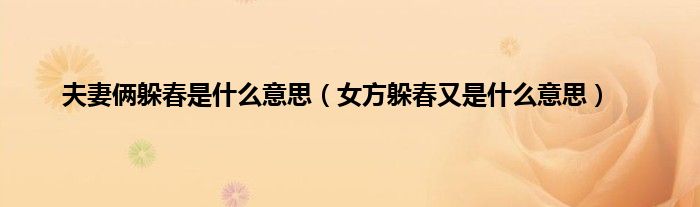 大家好,综合小编来为大家讲解下。夫妻俩躲春是什么意思,女方躲春又是什么意思这个很多人还不知道,现在让我们一起来看看吧!