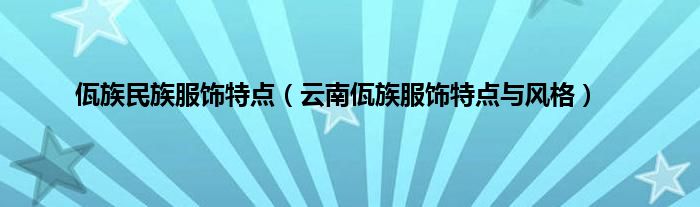 本文佤族民族服饰特点,云南佤族服饰特点与风格到此分享完毕,希望对大家有所帮助。
