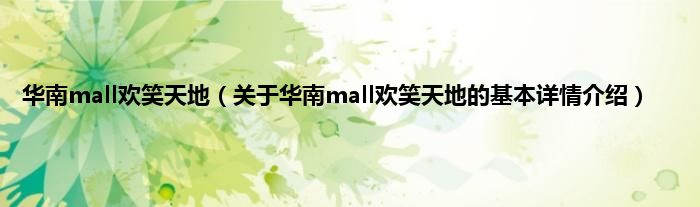 本文关于华南mall欢笑天地的基本详情介绍就讲解完毕,希望对大家有所帮助。