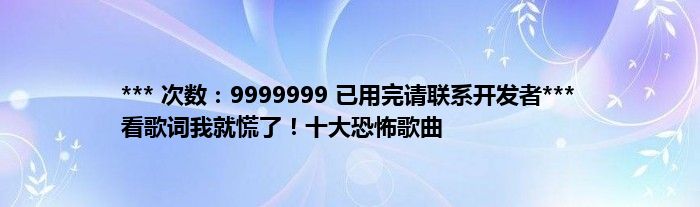大家好,综合小编来为大家讲解下。*** 次数:9999999 已用完请联系开发者*** 看歌词我就慌了!十大恐怖歌曲这个很多人还不知道,现在让我们一起来看看吧!