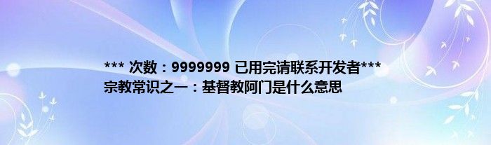 大家好,综合小编来为大家讲解下。*** 次数:9999999 已用完请联系开发者*** 宗教常识之一:基督教阿门是什么意思这个很多人还不知道,现在让我们一起来看看吧!