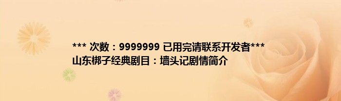 本文*** 次数:9999999 已用完请联系开发者*** 山东梆子经典剧目:墙头记剧情简介到此分享完毕,希望对大家有所帮助。