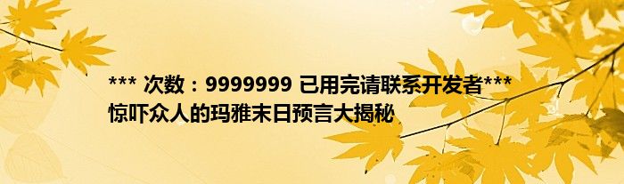 大家好,综合小编来为大家讲解下。*** 次数:9999999 已用完请联系开发者*** 惊吓众人的玛雅末日预言大揭秘这个很多人还不知道,现在让我们一起来看看吧!