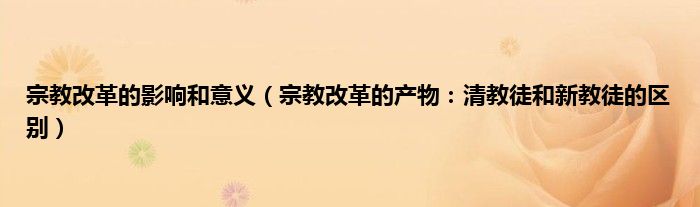 大家好,综合小编来为大家讲解下。宗教改革的影响和意义,宗教改革的产物:清教徒和新教徒的区别这个很多人还不知道,现在让我们一起来看看吧!
