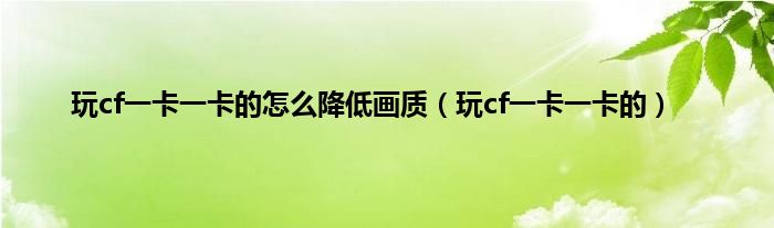 以上就是【玩cf一卡一卡的怎么降低画质,玩cf一卡一卡的】相关内容。