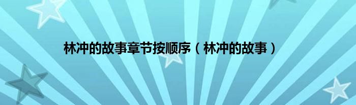 大家好,小问来为大家解答以上问题。林冲的故事章节按顺序,林冲的故事这个很多人还不知道,现在让我们一起来看看吧!
