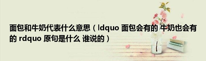 关于面包和牛奶代表什么意思,ldquo 面包会有的 牛奶也会有的 rdquo 原句是什么 谁说的这个很多人还不知道,今天菲菲来为大家解答以上的问题,现在让我们一起来看看吧!