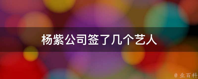 杨紫公司签了1个艺人。杨紫与经纪公司欢瑞世纪合约到期后,便成立了杨紫工作室,她工作室的艺人只有她自己,经纪人由她的母亲担任。杨紫,1992年11月6日出生于北京市,毕业于北京电影学院2010级表演系本科班,中国内地影视女演员。2002年,因出演古装历史情感剧《孝庄秘史》开始崭露头角。