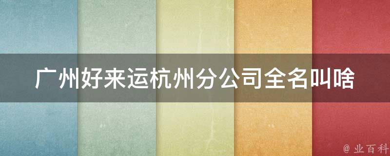 广州好来运杭州分公司全名叫广州市好来运物流有限公司。广州市好来运物流有限公司于2015年06月04日成立。法定代表人韦俊荣,公司经营范围包括:道路货物运输、道路货物运输代理、联合运输代理服务、物流代理服务、仓储代理服务等。