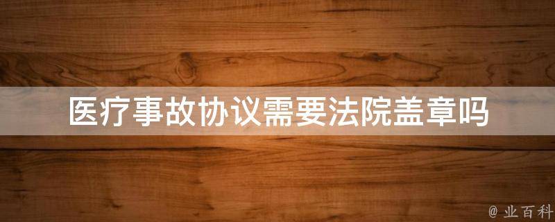 医疗事故协议不需要法院盖章。医疗事故协议是双方协商达成一致后签订的合同,合同生效后,双方应当按照协议的约定履行自己的义务。在医疗事故协议书中,首先需要清晰地陈述医疗事故的发生经过和相关证据,对医疗事故的经过和结果进行总结,并给予一定的赔偿。这种协议书不仅可以节约双方的时间和资源,还可以减少法律纠纷的发生。
