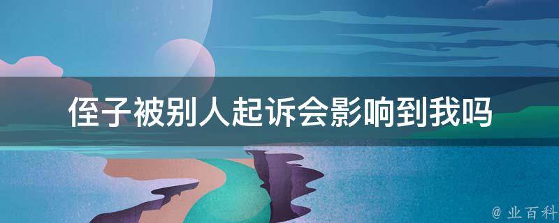 侄子被别人起诉不会影响到自己。侄子是自己的亲戚,法律诉讼是针对具体的案件,与亲戚无关。起诉是指当事人就民事纠纷向人民法院提起诉讼,请求人民法院依照法定程序进行审判的行为。起诉须有明确的被告人、具体的诉讼请求和事实根据,还须属于受诉法院管辖范围。