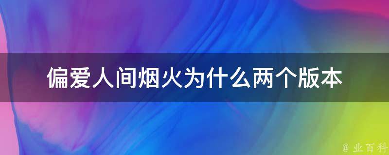 偏爱人间烟火两个版本是因为有翻唱的版本。《偏爱人间烟火》由胡夏、张紫宁演唱,是电视剧《长相思》的片尾曲,于2023年7月22日发布。胡夏和张紫宁的嗓音柔和,注入了细腻的情感表达,声线相互呼应,共同传达出温暖、柔情的情感,胡夏和张紫宁用细腻的演唱表达对爱情的珍视和渴望,让人感受到歌曲中的真实情感。