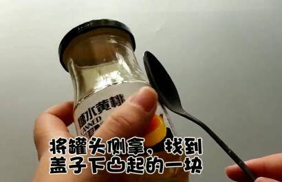 方法一:将罐头侧拿,找到盖子下凸起的一块。