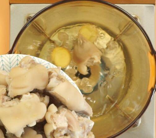 2、取猪蹄800克,焯水去腥味。
