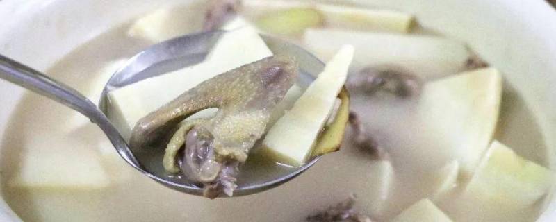 2、笋剥好之后切片焯水沥干,在刚才的油锅中煸炒一下,放入鸭肉和笋片,顺便加一些白胡椒去腥提鲜,煮至粥粘稠即可。