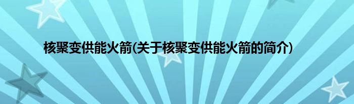 大家好,核聚变供能火箭,关于核聚变供能火箭的简介很多人还不知道,现在让我们一起来看看吧!
