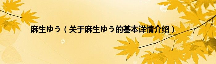 本文关于麻生ゆう的基本详情介绍就讲解完毕,希望对大家有所帮助。