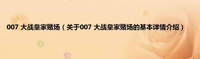 本文关于007 大战皇家赌场的基本详情介绍就讲解完毕,希望对大家有所帮助。