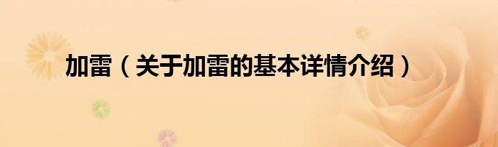 本文关于加雷的基本详情介绍就讲解完毕,希望对大家有所帮助。