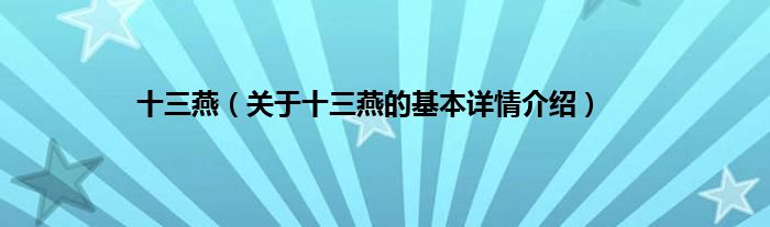 本文关于十三燕的基本详情介绍就讲解完毕,希望对大家有所帮助。