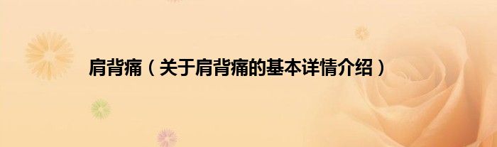 本文关于肩背痛的基本详情介绍就讲解完毕,希望对大家有所帮助。