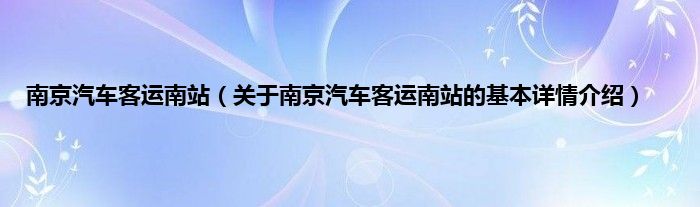 本文关于南京汽车客运南站的基本详情介绍就讲解完毕,希望对大家有所帮助。