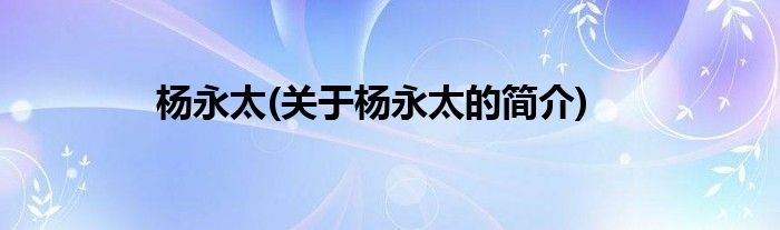 本文关于杨永太的简介就讲解完毕,希望对大家有所帮助。