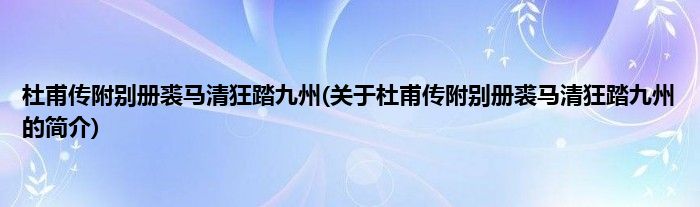 本文关于杜甫传附别册裘马清狂踏九州的简介就讲解完毕,希望对大家有所帮助。
