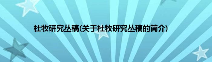 本文关于杜牧研究丛稿的简介就讲解完毕,希望对大家有所帮助。