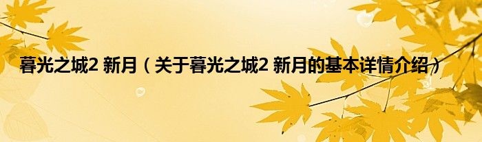 本文关于暮光之城2 新月的基本详情介绍就讲解完毕,希望对大家有所帮助。