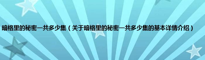 本文关于暗格里的秘密一共多少集的基本详情介绍就讲解完毕,希望对大家有所帮助。