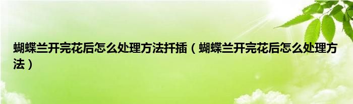 大家好,小科来为大家解答以上问题。蝴蝶兰开完花后怎么处理方法扦插,蝴蝶兰开完花后怎么处理方法很多人还不知道,现在让我们一起来看看吧!