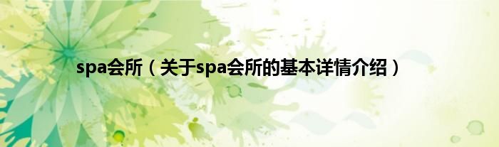 本文关于spa会所的基本详情介绍就讲解完毕,希望对大家有所帮助。