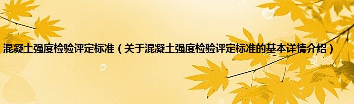 本文关于混凝土强度检验评定标准的基本详情介绍就讲解完毕,希望对大家有所帮助。