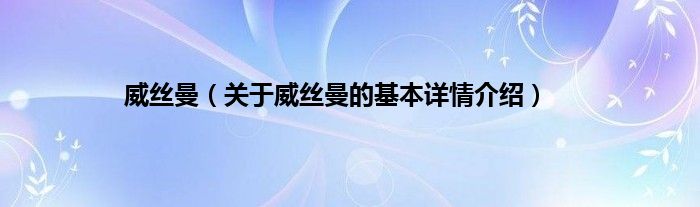 本文关于威丝曼的基本详情介绍就讲解完毕,希望对大家有所帮助。